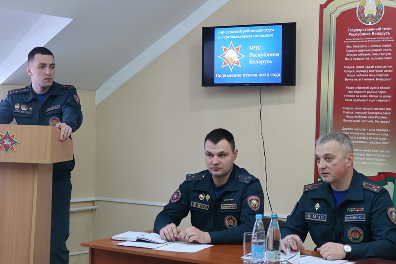 В актовом зале Городокского районного отдела по ЧС прошло подведение итогов оперативно-служебной деятельности за 2022 год с участием заместителя начальника Витебского областного управления МЧС Сергея Маркевича.