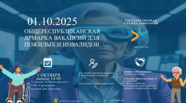 Ярмарка предназначена для людей предпенсионного и пенсионного возраста, а также для людей с инвалидностью. Участники смогут пройти собеседование с работодателями, получить консультации по содействию в трудоустройстве, по вопросам пенсионного и трудового законодательства.