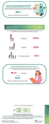 Почти половина (48,1%) занятых женщин в возрасте 18-58 лет воспитывают несовершеннолетних детей. Среди женщин-руководителей таких 42,2%!