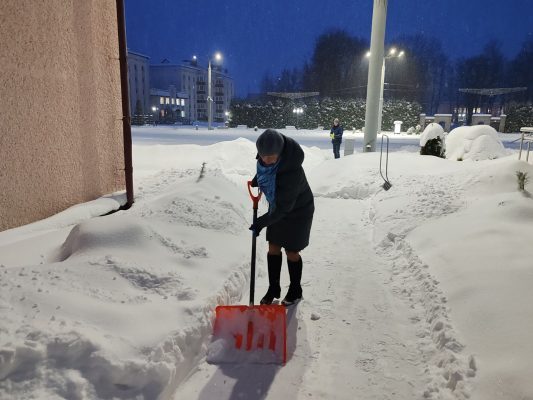 В Городке сегодня еще не рассвело, а снегоуборочная техника и люди с лопатами уже вовсю трудились, чтобы расчистить проезжую часть и тротуары, подходы к зданиям. Работа будет кипеть весь день. К борьбе со стихией подключаются представители самых разных предприятий и учреждений. Зима нынче капризничает, подкидывает такие снежные сюрпризы, справиться с которыми можно только сообща.