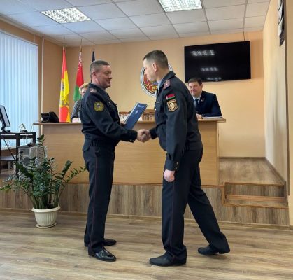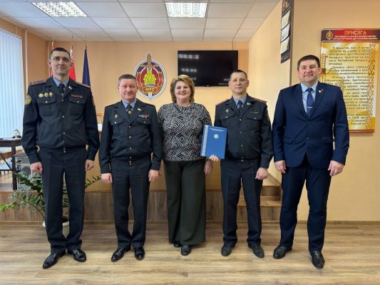 В отделе внутренних дел Городокского райисполкома начальник Витебского областного управления Департамента охраны Сергей Мурашкин представил нового руководителя отделения по охране объектов в Городке Октябрьского (г. Витебска) отдела Департамента охраны – майора милиции Алексея Брезгунова.
