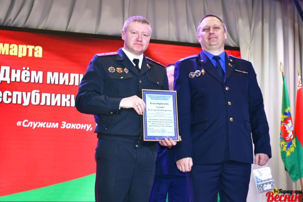 — Благодаря смелости и преданности выбранному делу вы пользуетесь заслуженным авторитетом у жителей Городокщины. У вас непростая работа, которая требует максимальной самоотдачи и любви к Отечеству, преданности народу. Государство ценит ваш вклад в дело безопасности, старается обеспечить всем необходимым для службы и решить бытовые проблемы, — отметила председатель райисполкома Ирина Полякова. — Отдельных слов благодарности заслуживают члены семей милиционеров, которые окружают их теплом и заботой, с пониманием относятся к издержкам деятельности. Также спасибо ветеранам органов внутренних дел, которые, находясь на заслуженном отдыхе, продолжают вносить вклад в развитие района — участвуют в общественной жизни, патриотическом воспитании молодежи.
