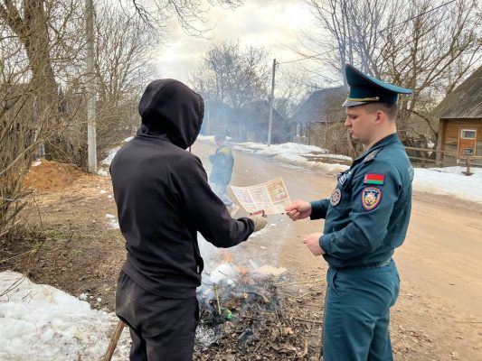 В ходе профилактической работы в населенных пунктах спасатели беседуют с гражданами, как безопасно наводить порядки на придомовых территориях. Чтобы не стать жертвой огня.