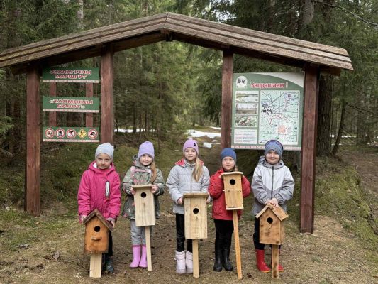 Международный день птиц, который отмечается 1 апреля, воспитанники детсада отметили интересно и полезно: совместно со специалистами районной инспекции природных ресурсов и охраны окружающей среды, Туристического информационного центра и ГПУ «Корытинский мох» ребята приняли участие в замечательной акции. Взрослые и дети дружно потрудились на экологической тропе заказника республиканского значения «Корытенский мох». Совместными усилиями были изготовлены и установлены 10 новых домиков для птиц. Причем юные волонтеры привезли скворечники, которые они смастерили вместе с родителями.