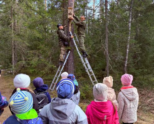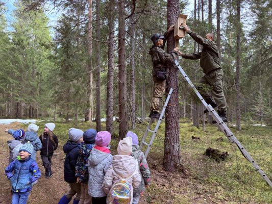 Международный день птиц, который отмечается 1 апреля, воспитанники детсада отметили интересно и полезно: совместно со специалистами районной инспекции природных ресурсов и охраны окружающей среды, Туристического информационного центра и ГПУ «Корытинский мох» ребята приняли участие в замечательной акции. Взрослые и дети дружно потрудились на экологической тропе заказника республиканского значения «Корытенский мох». Совместными усилиями были изготовлены и установлены 10 новых домиков для птиц. Причем юные волонтеры привезли скворечники, которые они смастерили вместе с родителями.
