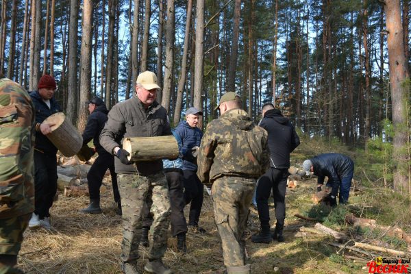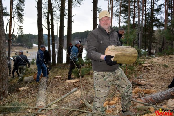 В лесу возле лыжероллерной трассы сегодня трудились городокчане во главе с председателем райисполкома Ириной Поляковой и председателем районного Совета депутатов Светланой Зуевой. Серьезную помощь им оказали представители областного управления № 200 ОАО «АСБ Беларусбанк». Более 30 работников финансовой сферы во главе с начальником управления Виталием Васюковым приехали из Витебска, чтобы внести свой вклад в уборку лесного массива в рамках субботника и акции «Лес! Дабро! Парадак!». Дружная бригада очищала прибрежную зону озера, где накануне вырубили разросшиеся зеленые насаждения.