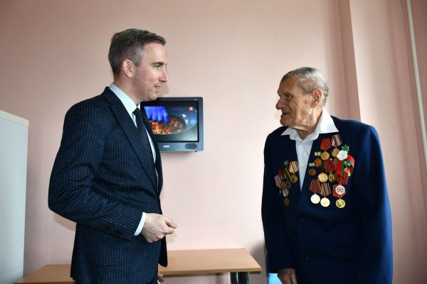 Еще одной важной составляющей визита стало поздравление людей, которые пережили Великую Отечественную войну. Одним из них был Александр Скородумов из деревни Прудок Первомайского сельсовета. Ветеран приболел, поэтому Глеб Лапицкий навестил его в Городокской ЦРБ, вручил подарок и пожелал скорейшего выздоровления.